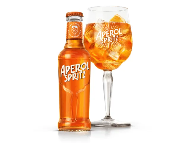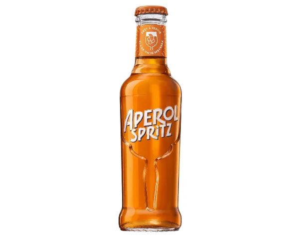Aperol Spritz is een zeer populair aperitief in het noorden van Italië, waar het al meer dan een eeuw wordt geserveerd. Hoewel er talloze variaties zijn, bestaat het traditionele recept uit 5 delen Prosecco, 3 delen Aperol en 2 delen sprankelend mineraalwater, geroerd en gegoten in een hoog glas met ijs en gegarneerd met een schijfje sinaasappel. De flesjes zijn kant en klaar.