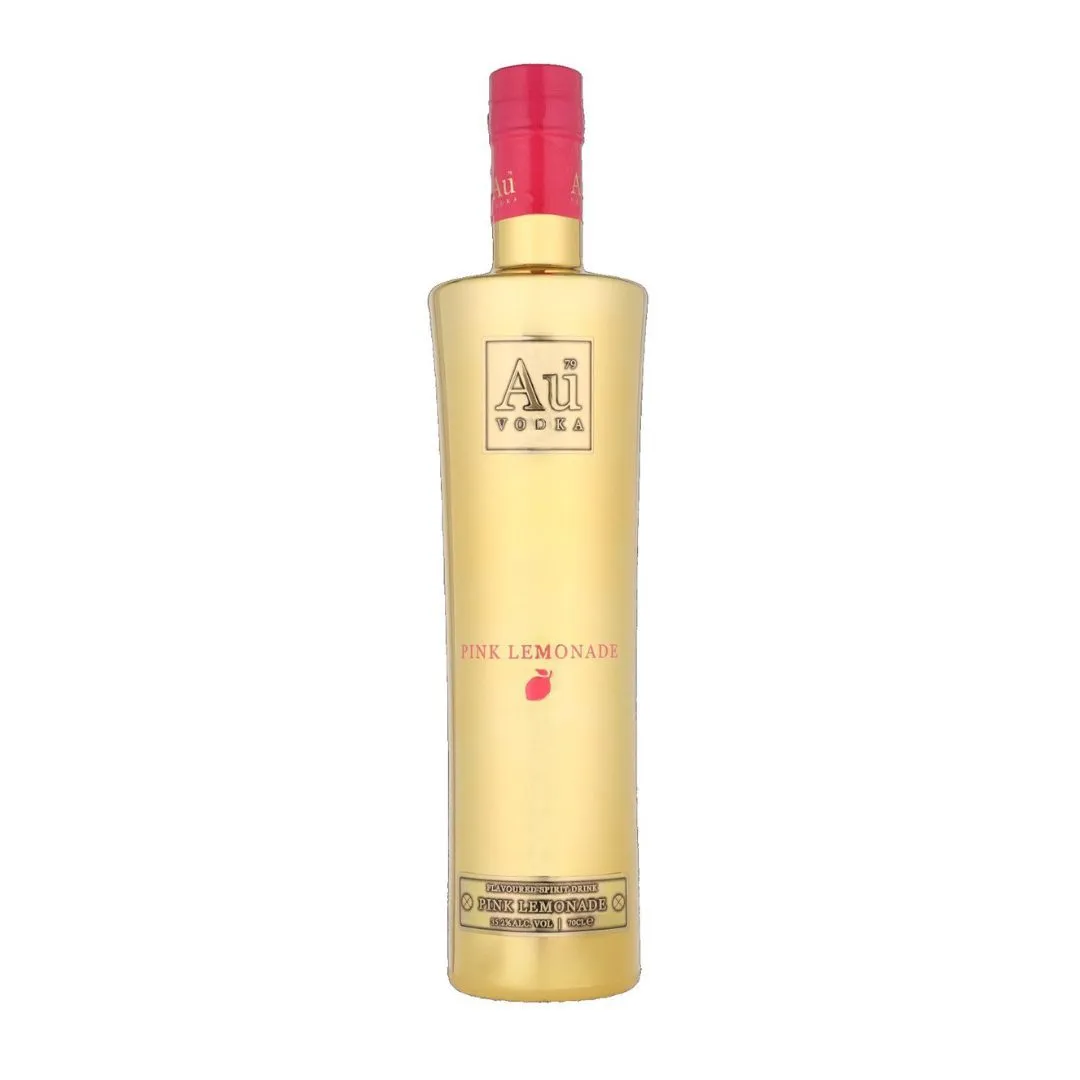 Au Vodka Pink Lemonade est le fruit d’une alliance exceptionnelle entre une vodka cinq fois distillée et les arômes naturels des citrons les plus juteux 🍋. Cette boisson arbore une teinte rose vif qui captive le regard et évoque la douceur fruitée d’un été sans fin. Son design élégant, marqué par une bouteille au fini doré, symbolise l’excellence et l’élégance moderne de cette vodka rosée.