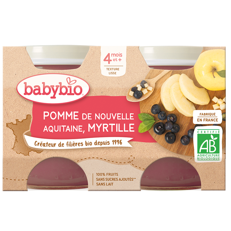 Purée de pommes et myrtilles bio Aliment pour bébés