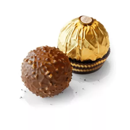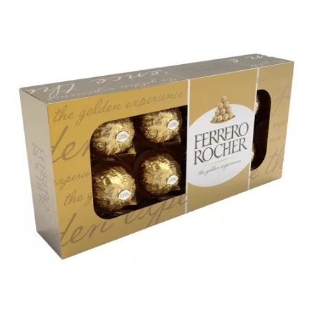 Deze overheerlijke chocoladespecialiteit werd in 1984 in België op de markt gebracht en is voor Ferrero op wereldschaal een immens succesproduct. Wat de charme van Ferrero Rocher uitmaakt, is het exclusieve recept waarvan iedereen houdt. Want proevenvan een Ferrero Rocher brengt een ware smaakexplosie teweeg: een heerlijke hazelnoot met daaromheen de zachtste chocolade en een knapperig wafeltje, afgewerkt met een knapperig laagje en stukjes hazelnoot. Ferrero Rocher maakt uw feesten en andere mooie momenten onvergetelijk door een vleugje elegantie, verfijning en plezier toe te voegen. Er zitten 8 stuks in een doosje. Er zitten 8doosjes in een tray.