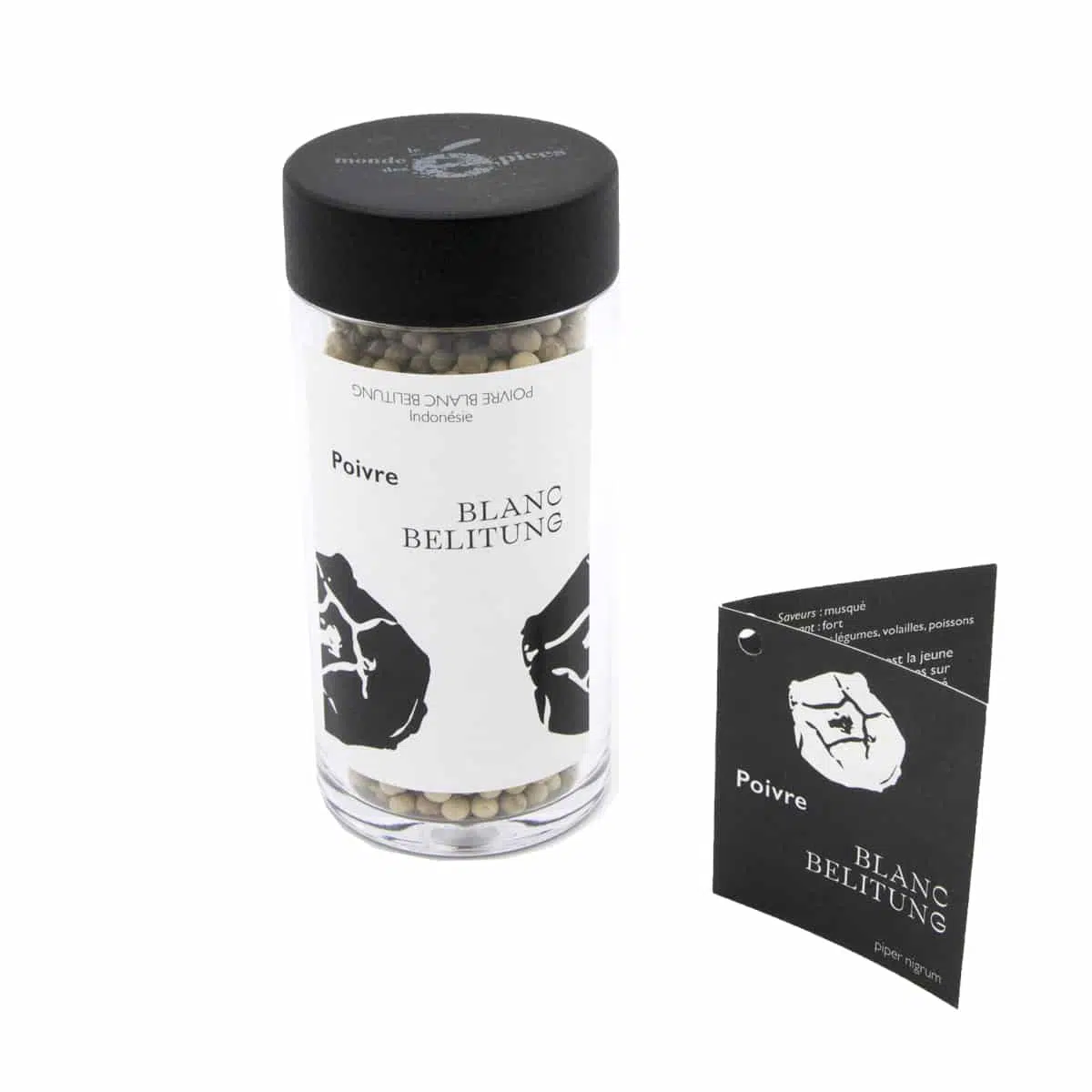 Issu de notre plantation “Dunia Rempah”sur l’Ile Belitung, en Indonésie , ce poivre blanc cultivé en permaculture développe une saveur prononcée et un piquant agréable couplé à une note musquée due à sa macération en rivière.