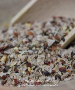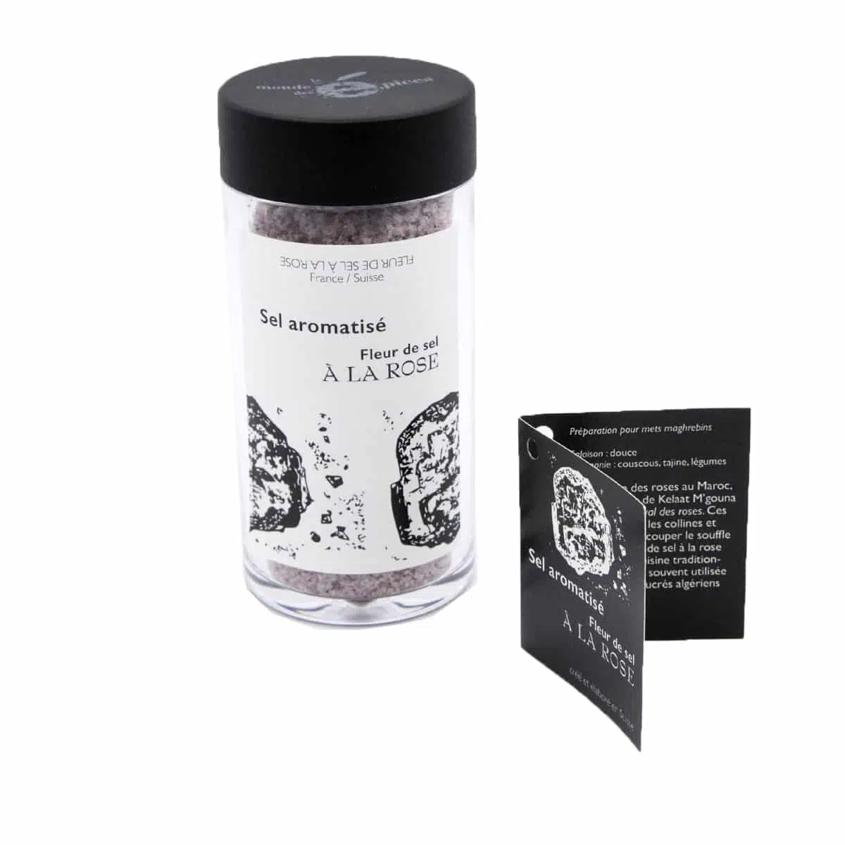 Inspiré de la vallée des roses au Maroc, aux portes de la ville de Kelaat M’gouna ainsi connue pour son « festival des roses ». Ces roses sauvages parent les collines d’un rose éclatant, offrant un spectacle à couper le souffle et les narines. La fleur de sel à la rose vient agrémenter la cuisine traditionnelle du Maghreb, très souvent utilisée pour les tajines salés sucrés algériens ou les couscous.